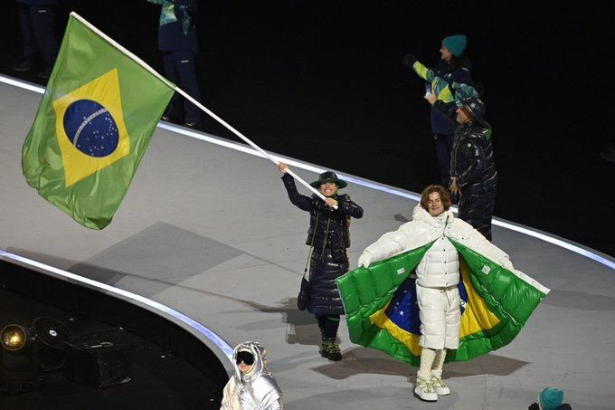 Lucas Pinheiro, do esqui alpino, foi o responsável por levar a bandeira do Brasil na cerimônia principal no Estádio San Siro, também chamado de Giuseppe Meazza, junto a esquiadora cross country Bruna Moura. Lucas entrou com muito sorriso no rosto e durante a passagem pelo San Siro entregou a bandeira para Bruna, atleta que sofreu acidente gravíssimo no caminho para a disputa dos Jogos de Pequim-2022, na China, e finalmente faz a estreia em edições olímpicas.