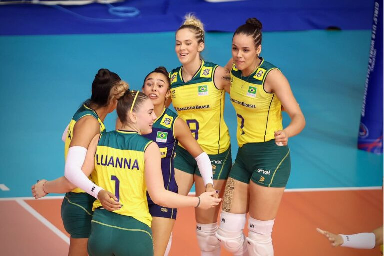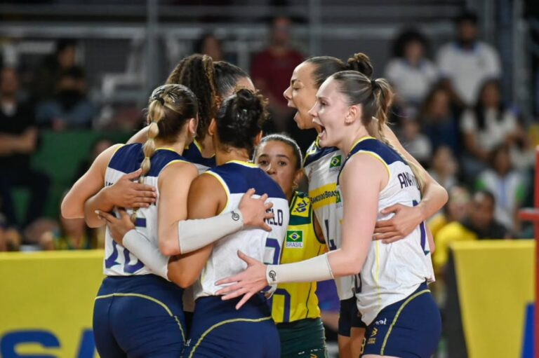 Após uma vitória por 3 sets a 0 (25-20, 25-10 e 25-17), Brasil garante pódio na competição e enfrenta Argentina na busca pelo título