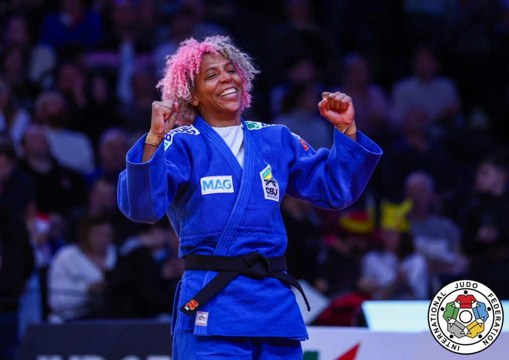 “Então foi o que eu falei para a treinadora da comissão técnica que trabalha comigo, a minha irmã, porque de fato as pessoas falaram: ‘Ah, depois de Paris, a Rafaela vai parar, ganhou mais uma medalha olímpica e ela vai parar o judô, vai se aposentar’.”E eu senti também de fato que não era o momento de me aposentar ainda, que eu conseguiria ainda dar muita alegria para a cidade por um judô brasileiro e eu precisava me desafiar. Então, primeiro veio a mudança de categoria, de largar o meu quarto lugar no ranking mundial e recomeçar tudo do zero numa nova categoria”, completou Rafaela.