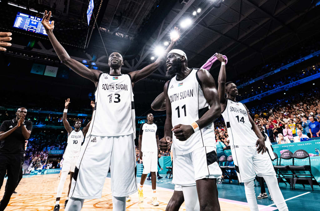 No primeiro jogo olímpico do Sudão do Sul, a primeira vitória aconteceu contra Porto Rico. As duas seleções oscilaram em bons e maus momentos durante a partida. No momento decisivo, o técnico americano Royal Ivey, que comanda o time africano, apostou na juventude de JT Thor. O armador Carlik Jones foi o cestinha com 19 pontos, 7 rebotes e 6 assistências. O Sudão do Sul venceu a batalha dos rebotes por 55-37, pegando 18 rebotes ofensivos e com uma vantagem incrível de 24-2 em pontos.