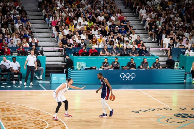Durant ficou fora dos cinco jogos amistosos dos Estados Unidos antes dos Jogos Olímpicos de Paris devido a uma lesão na panturrilha. O atleta, de 35 anos, levantou suspeitas sobre sua condição para a competição, mas os 21 pontos somente no primeiro tempo – com cinco tentativas de bolas de 3 convertidas – tiraram qualquer sombra de dúvidas. Ele também foi o cestinha com 23 pontos.